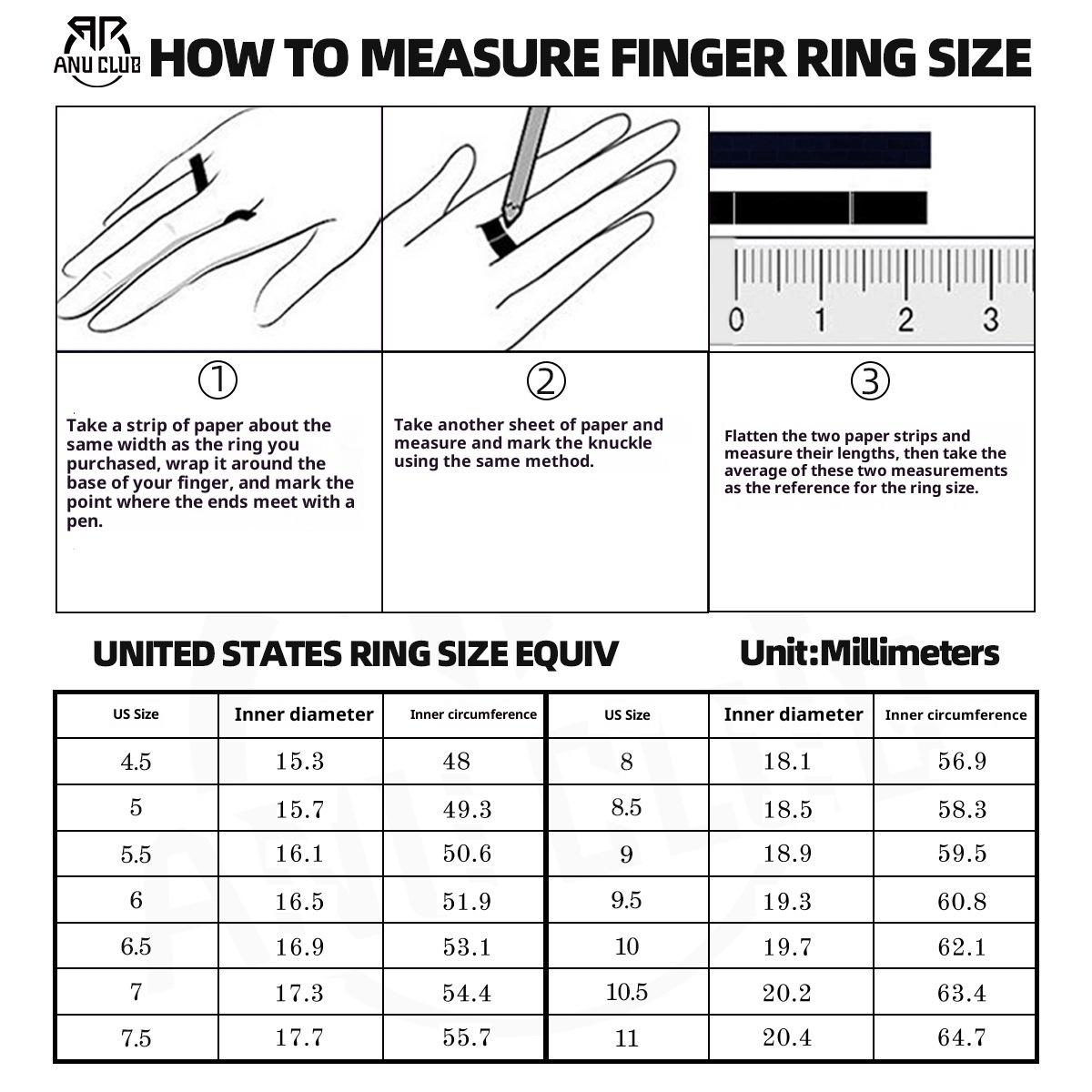 Size: US size 5/inner diameter mm, US size 5.5/inner diameter mm, US size 6/inner diameter mm, US size 6.5/inner diameter mm, US size 7/inner diameter mm, US size 7.5/inner diameter mm, US size 8/inner diameter mm, US size 8.5/inner diameter mm, US size 9/inner diameter 18.9mm